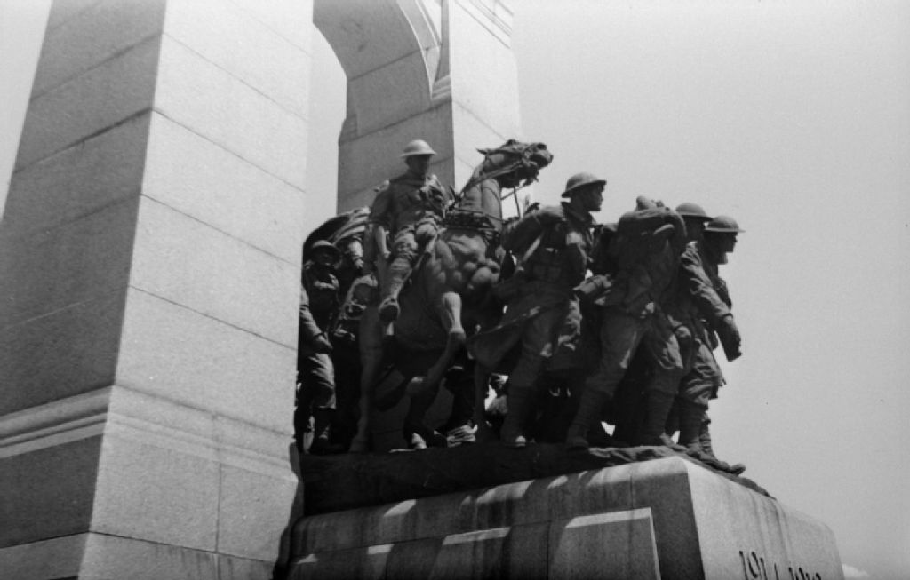 Sur le monument aux Morts, nous remarquons les statues représentant des militaires. Le cénotaphe est situé à la Place de la Confédération à Ottawa