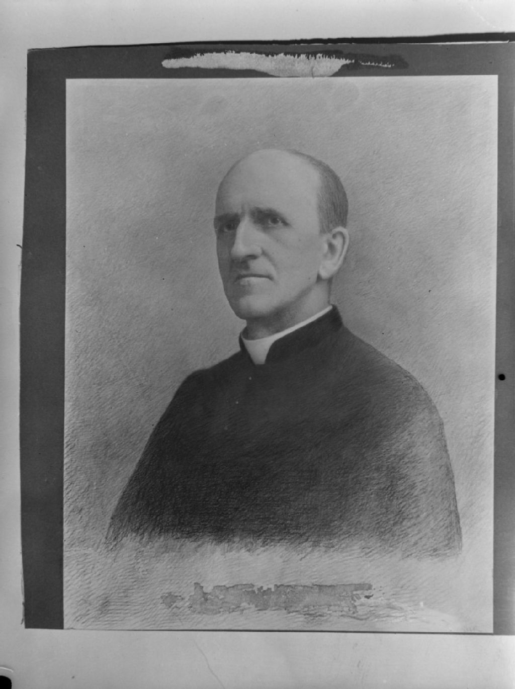 Nous voyons un portrait d'un chanoine exposé à la maison-mère des religieuses de la Congrégation de Notre-Dame située sur la rue Sherbrooke Ouest à Montréal (devenue le Collège Dawson)