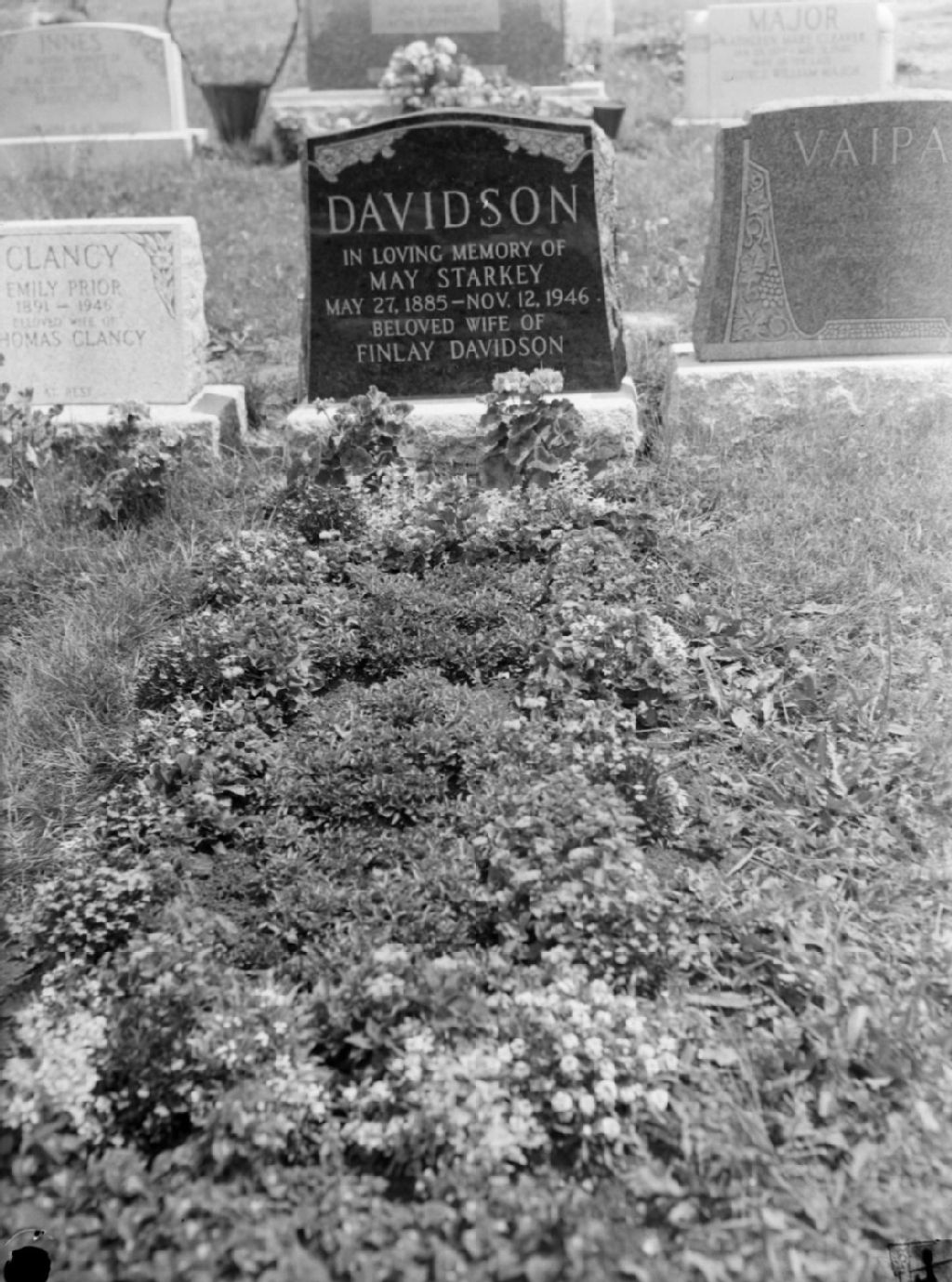 Nous voyons la pierre tombale de May Starkey, épouse de Finlay Davidson