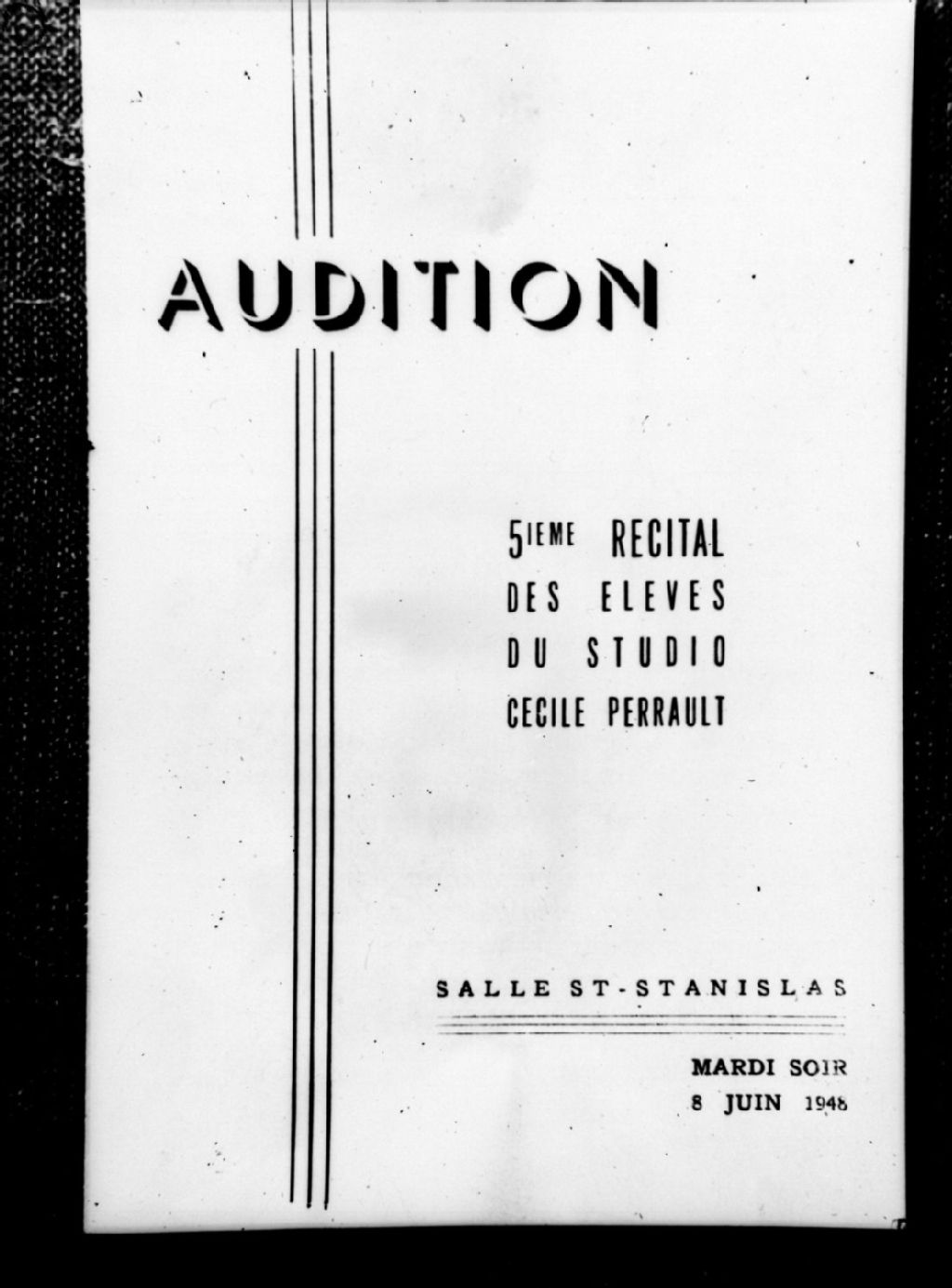 Nous voyons la page couverture du programme du récital des élèves du studio Cécile Perrault à la salle Saint-Stanislas