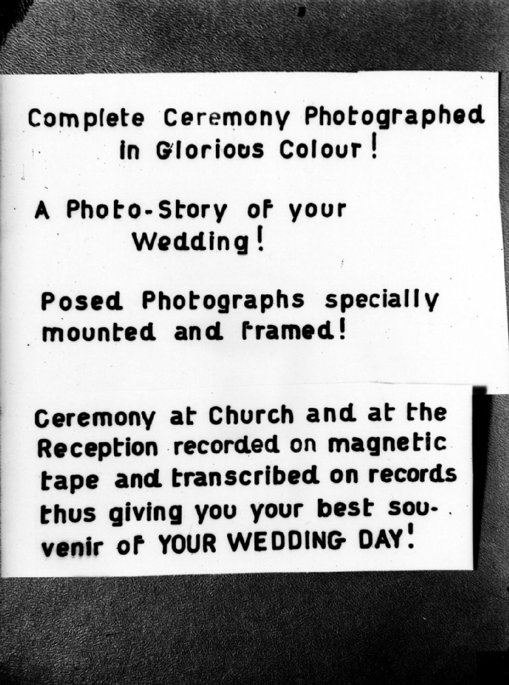 Nous voyons un texte publicitaire faisant la promotion de photographies de mariage