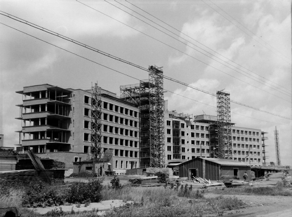 Nous voyons la fin de la construction du nouvel hôpital sanatorium Saint-Joseph (devenu le pavillon Rosemont de l'hôpital Maisonneuve-Rosemont) situé sur le boulevard Rosemont à Montréal