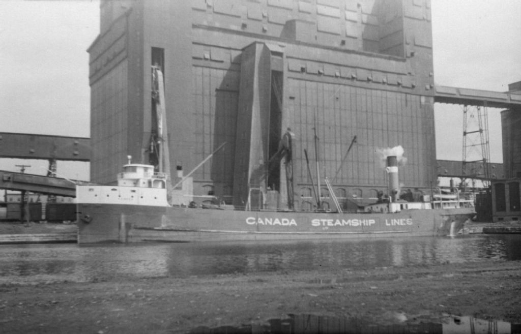 Le cargo «Kenora» des «Canada Steamship Lines» navigue devant les industries qui bordent le canal de Lachine à Montréal