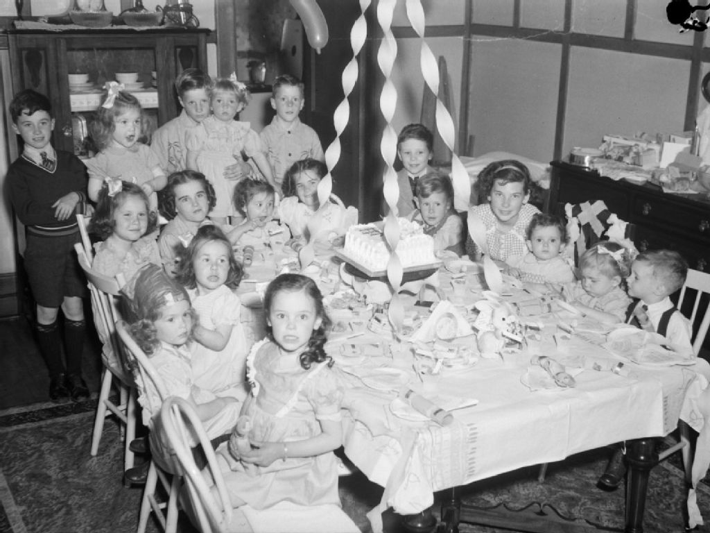 Les enfants sont réunis autour de la table pour fêter l'anniversaire de la fillette de madame et monsieur Walters J. Doyle de l'avenue Wilson à Montréal