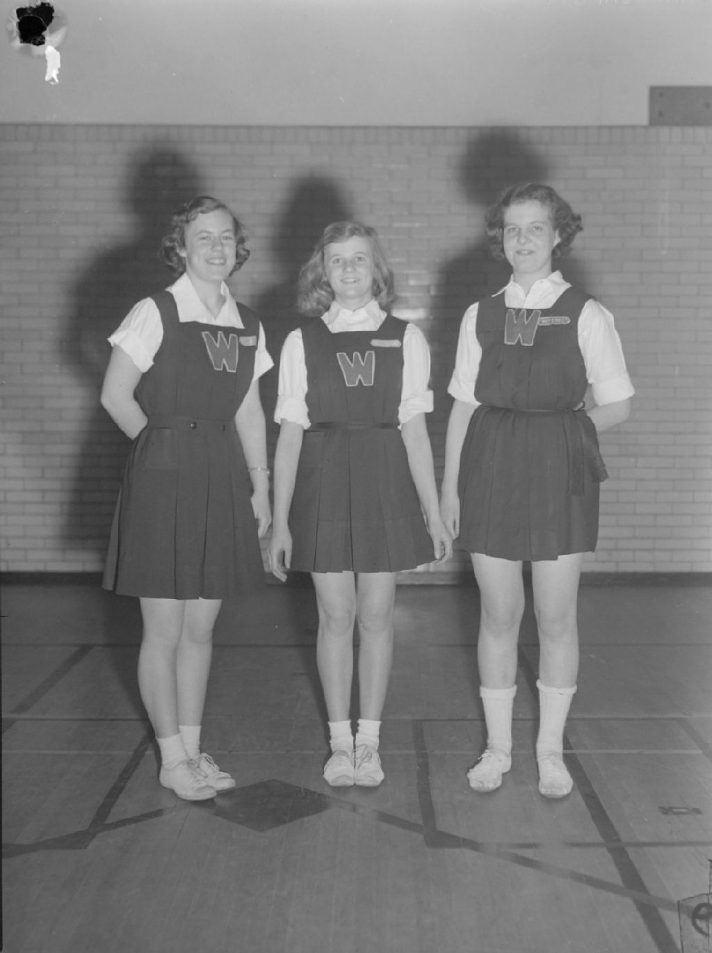 Nous voyons trois membres d'une équipe sportive féminine de la Westmount Junior High School