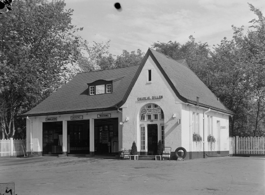 Nous voyons la station-service «Charlie Dillon» située avenue Monkland à Montréal