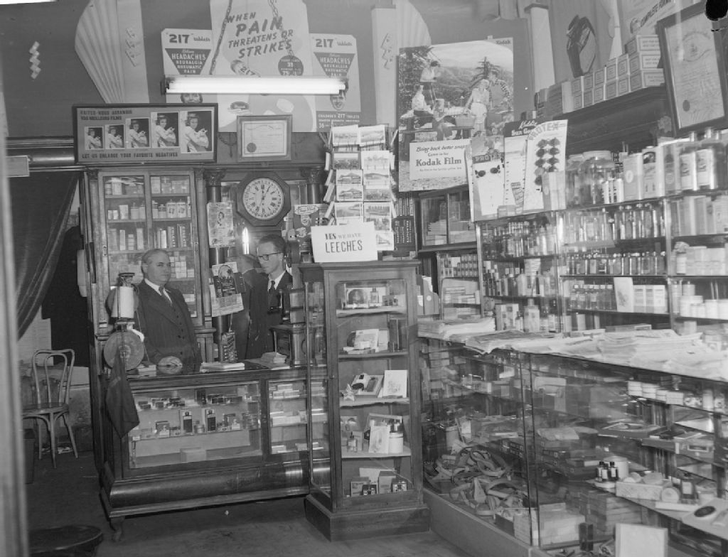 Commercial. Boulkind Pharmacy, 4 décembre 1949, Archives nationales à Montréal, Fonds Conrad Poirier, (06M,P48,S1,P17485), Poirier, Conrad.