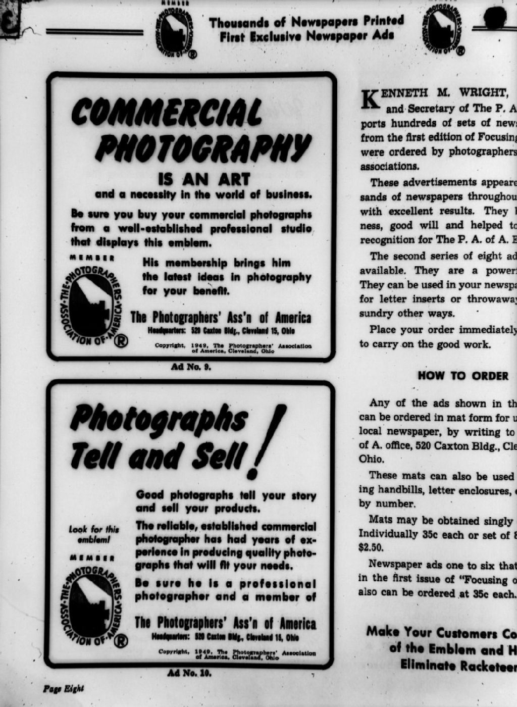 Nous voyons des annonces publicitaires de «The Photographers' Association of America»