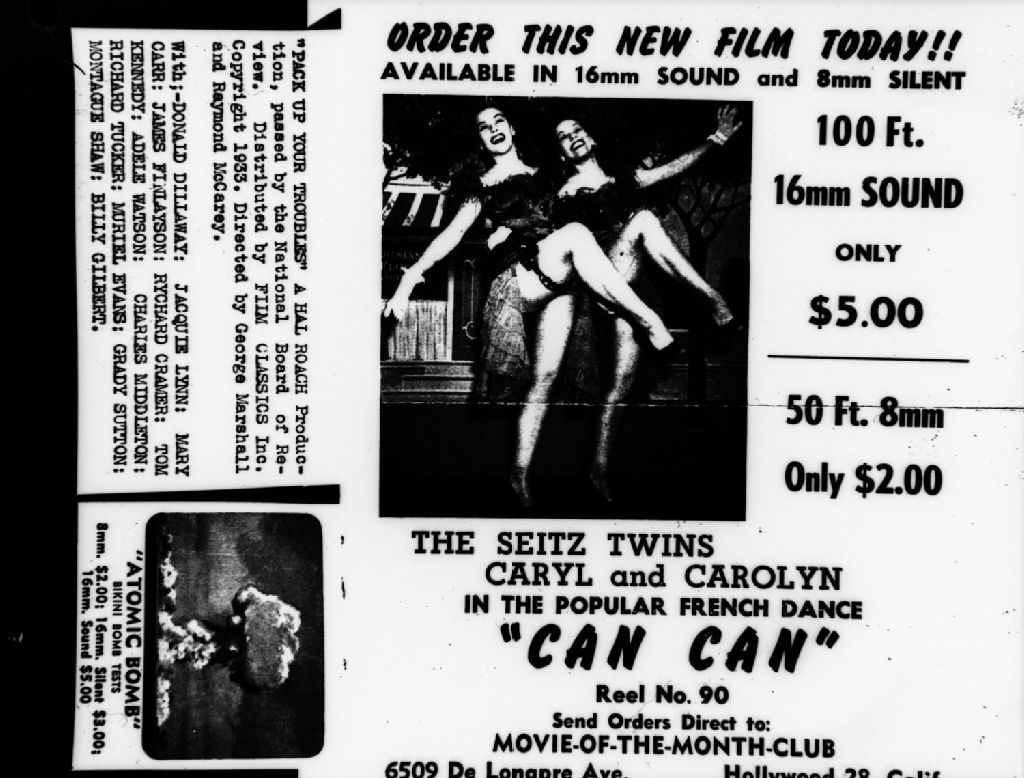 Nous voyons l'annonce publicitaire du film «Can Can» mettant en vedette les jumelles Caryl et Carolyn Seitz