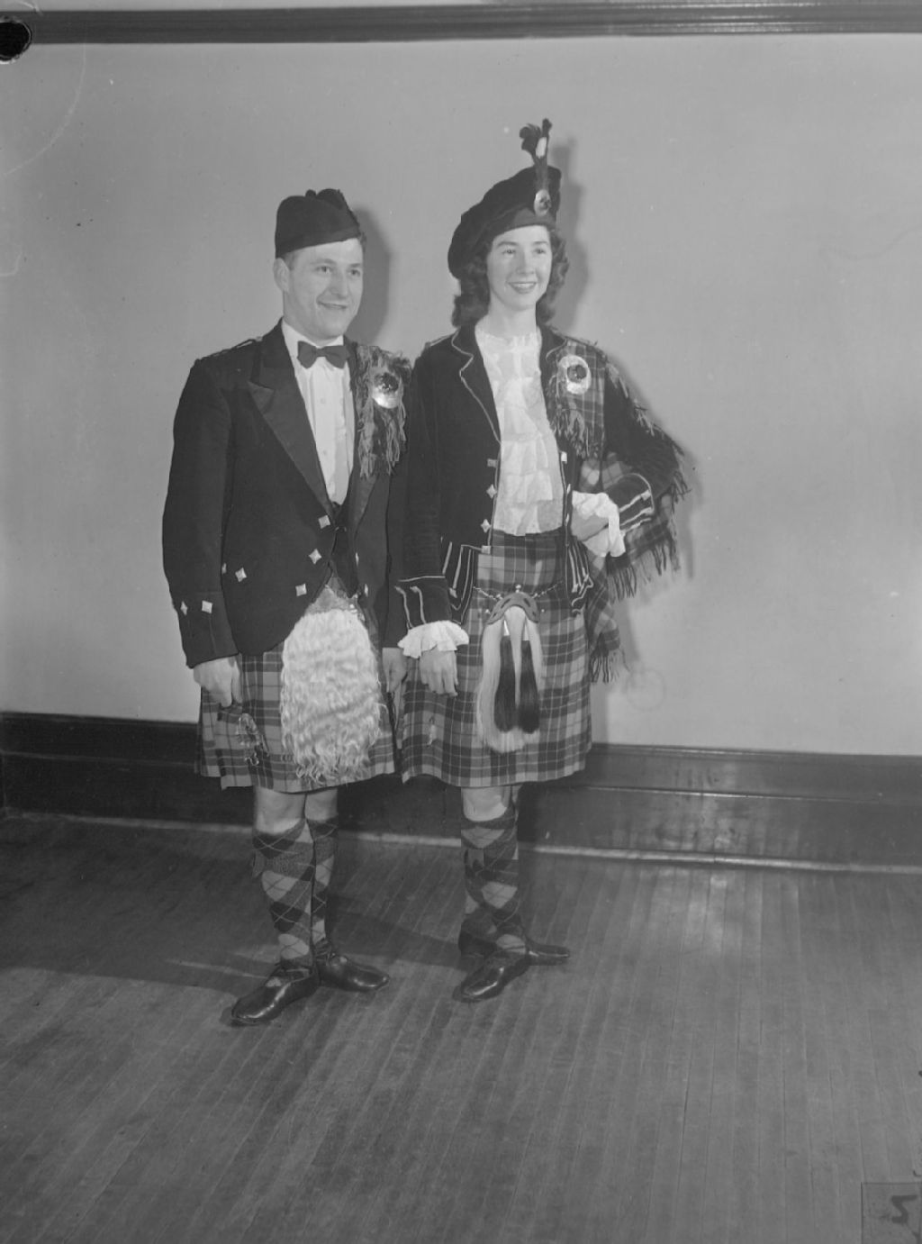 Un couple, en costume national des Écossais, suit des cours de danse à la «Carrie Biggers Dance School»
