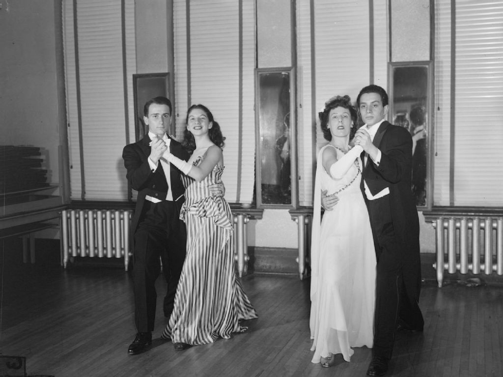 Deux couples, en tenue de soirée, suivent des cours de danse au Park Dance Studio de l'avenue Van Horne à Outremont