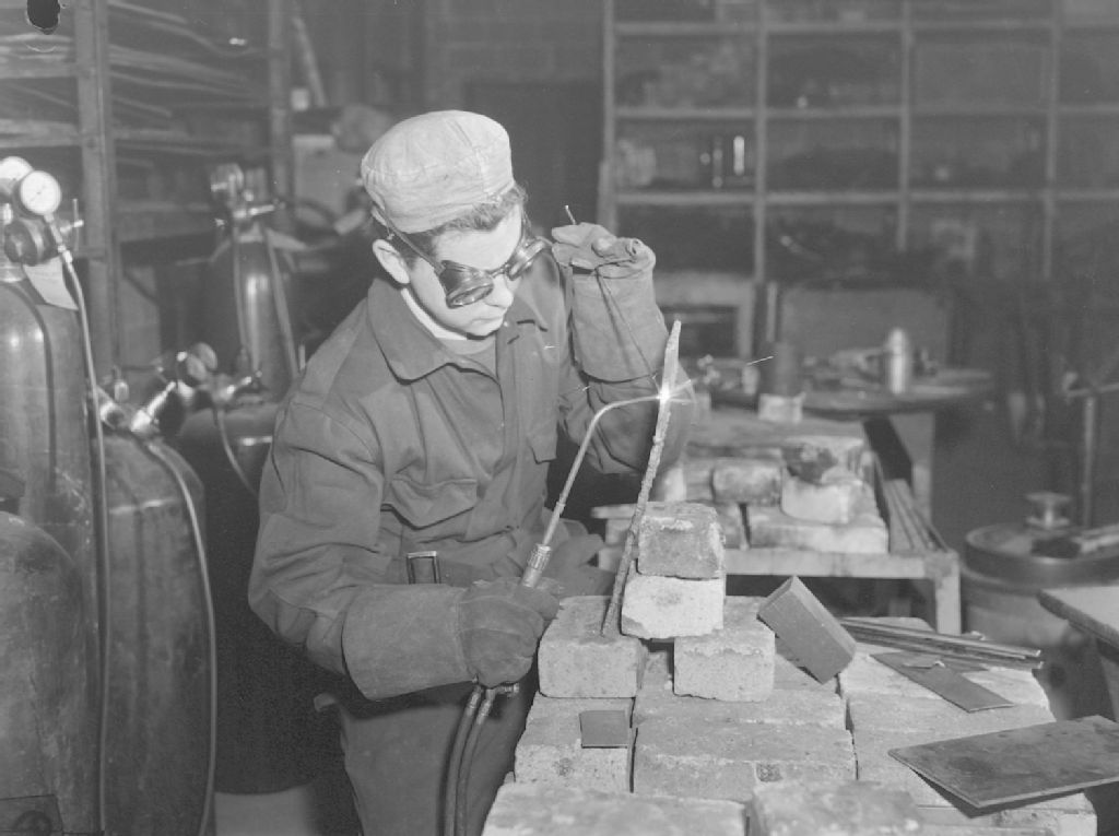 Feature. Ecole de Maisonneuve : Soldering, 11 avril 1949, Archives nationales à Montréal, Fonds Conrad Poirier, (06M,P48,S1,P17805), Poirier, Conrad.