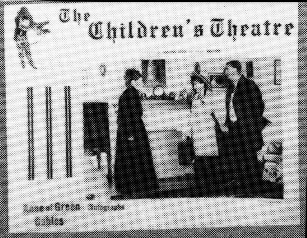 Nous voyons une affiche publicitaire illustrée de la pièce de théâtre pour enfants «Anne of Green Gables» d'après L. M. Montgomery présentée par The Children's Theatre
