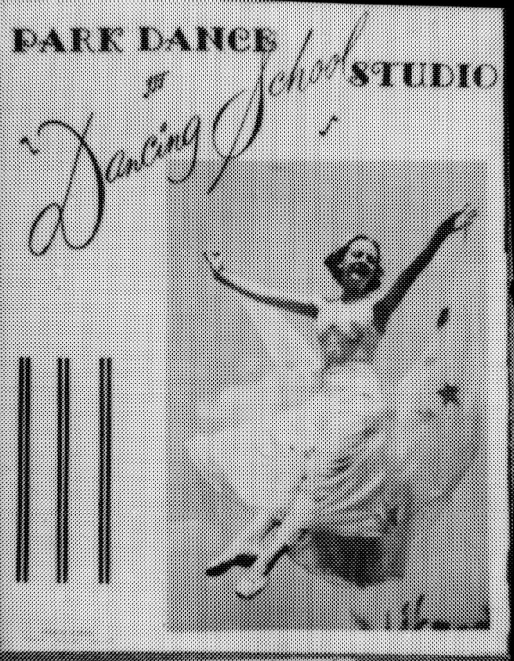 Nous voyons l'affiche publicitaire illustrée du studio de danse «Park Dance Studio» de l'avenue Van Horne à Outremont