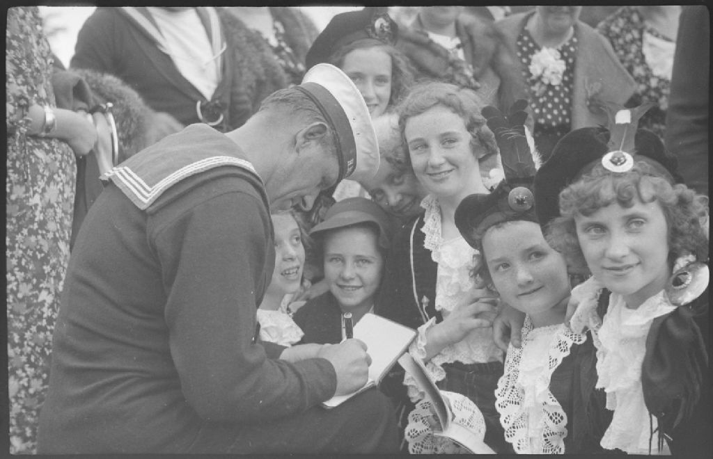 Lors de compétitions sportives écossaises, «The Caledonian Games» à Montréal, nous apercevons, entouré de spectateurs, un matelot du H M S Apollo signant des autographes