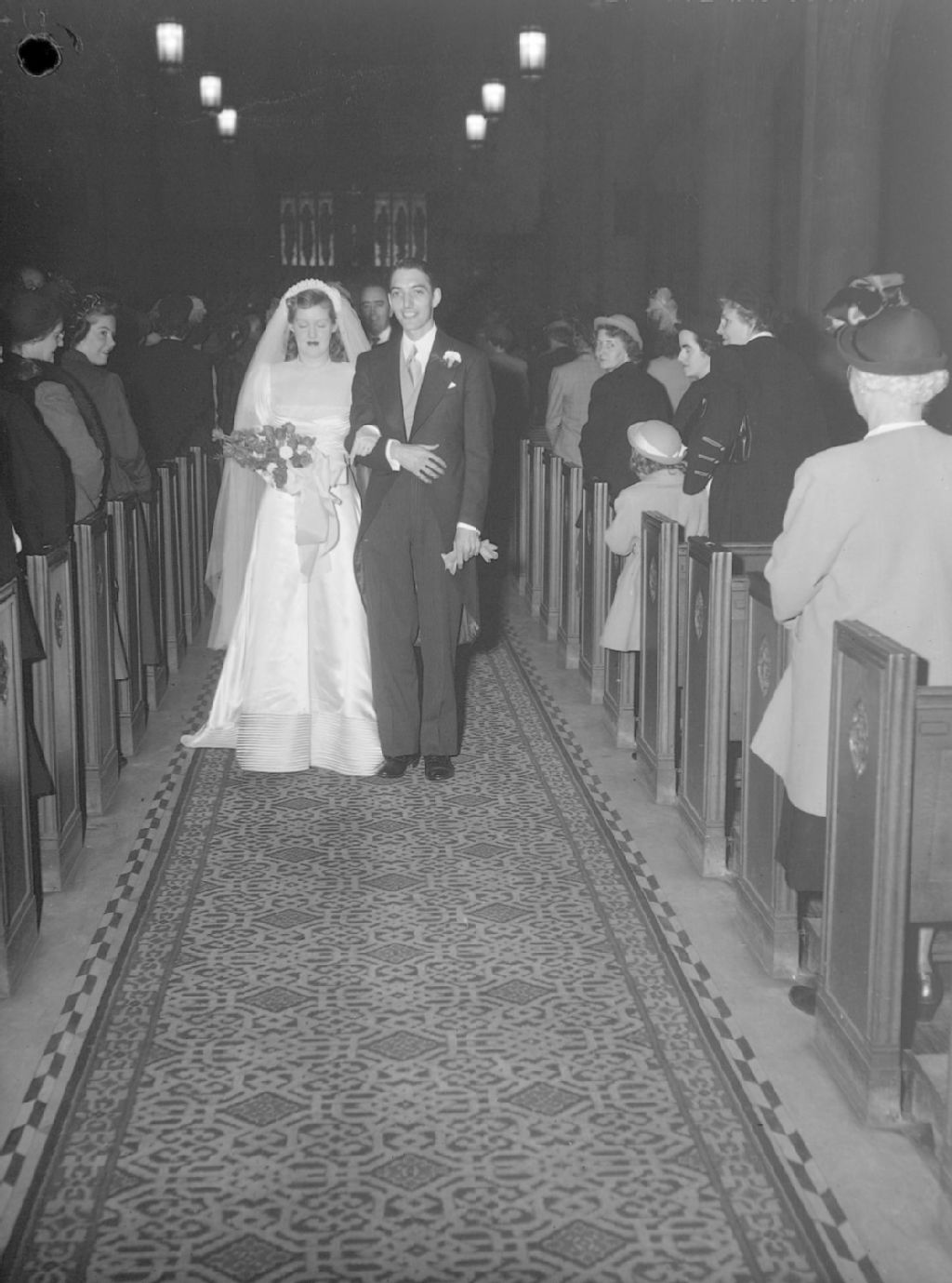 Les nouveaux mariés, les Griffin-McCaffrey, marchent dans la nef de l'église Church of the Ascension of Our Lord de l'avenue Kitchener à Westmount