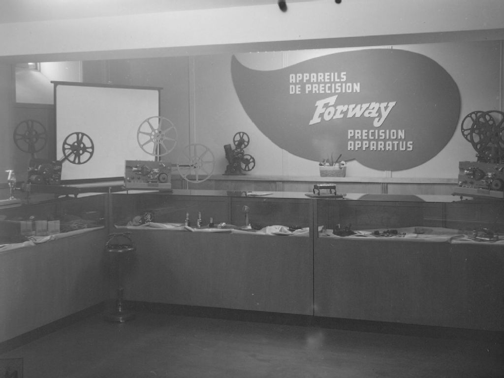 Vue partielle du magasin de la compagnie GDL. Nous remarquons une annonce de la compagnie Forway qui fabrique des projecteurs de films et des autres articles nécessaires pour la production et le visionnement de films