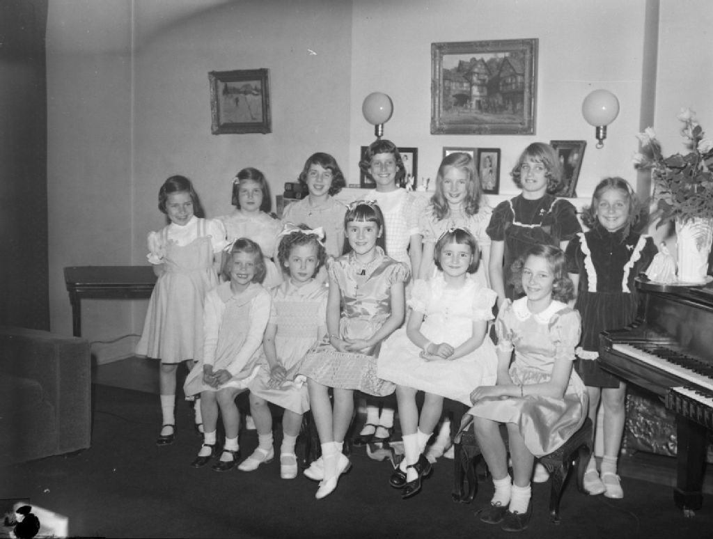 Des fillettes sont réunies dans le salon de la famille Duquet. Nous remarquons le piano