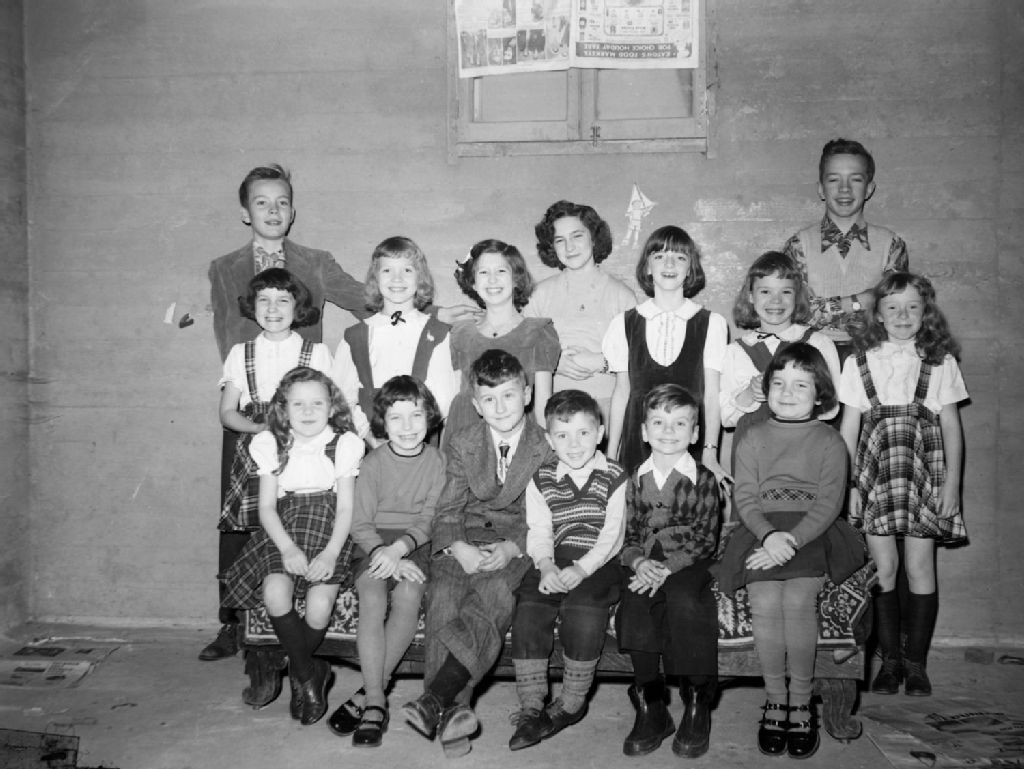 Des enfants sont réunis au sous-sol d'une résidence pour célébrer l'anniversaire de Janet Dettman. Nous remarquons que la pièce est dénudée et des pages du catalogue du magasin Eaton servent de rideaux à la fenêtre