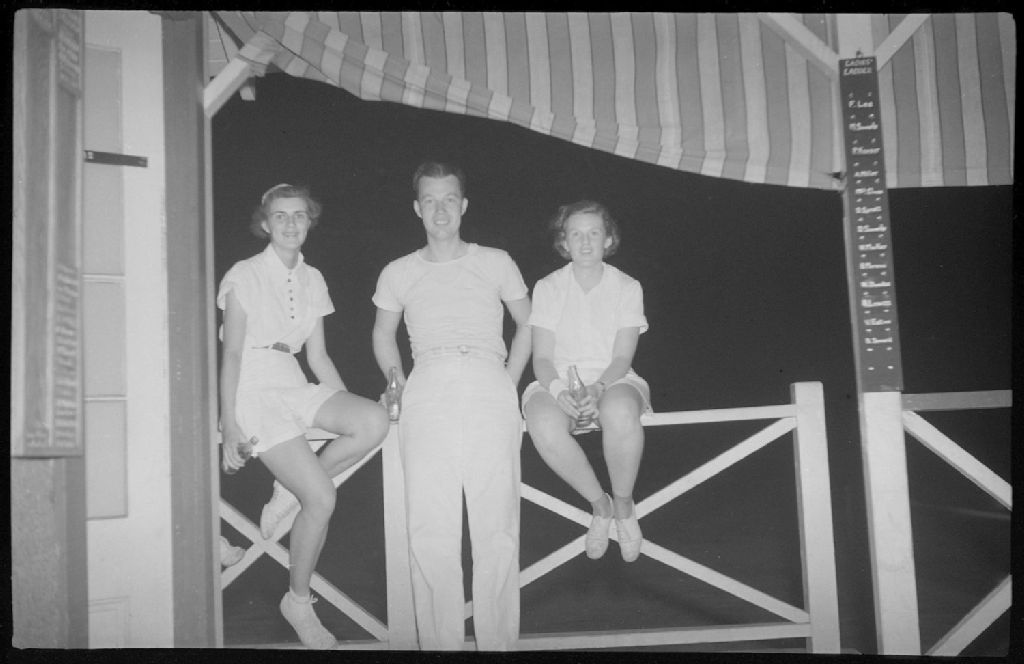 Au «Benedicts Tennis Club» de l'avenue Bedbrook à Montréal-Ouest, nous voyons un homme (Don Allan) et deux femmes (Beatrice Moreau et Joan Garland)