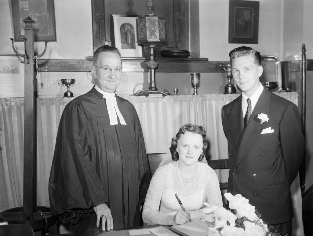 Wedding. Findlay : Perrett, 1950, Archives nationales à Montréal, Fonds Conrad Poirier, (06M,P48,S1,P19410), Poirier, Conrad.