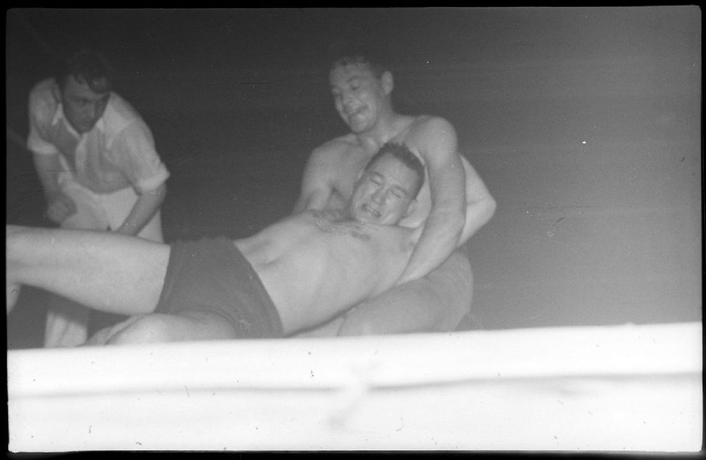 Wrestling. Jack Moore, Harry Madison, 22 août 1937, Archives nationales à Montréal, Fonds Conrad Poirier, (06M,P48,S1,P1954), Poirier, Conrad.
