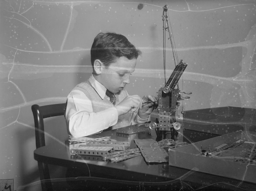 Le petit Cronin joue avec un jeu de construction meccano