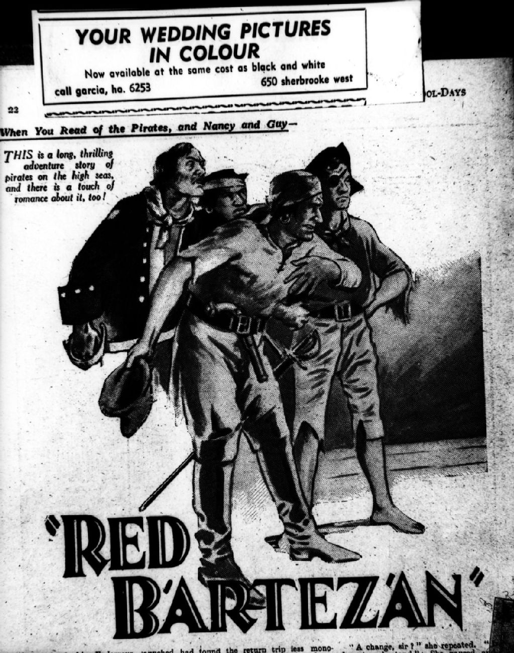 Nous voyons une illustration du roman de Duncan Neish «Red Bartezan»