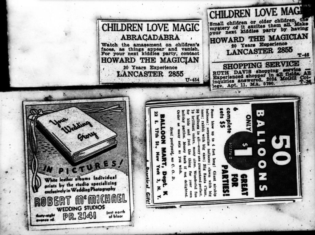 Nous voyons, entre autres, des annonces publicitaires de photographes et de magiciens