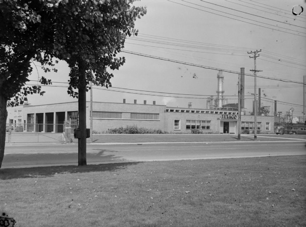 Nous voyons l'usine de produits pétroliers Texaco des distributeurs McColl Frontenac
