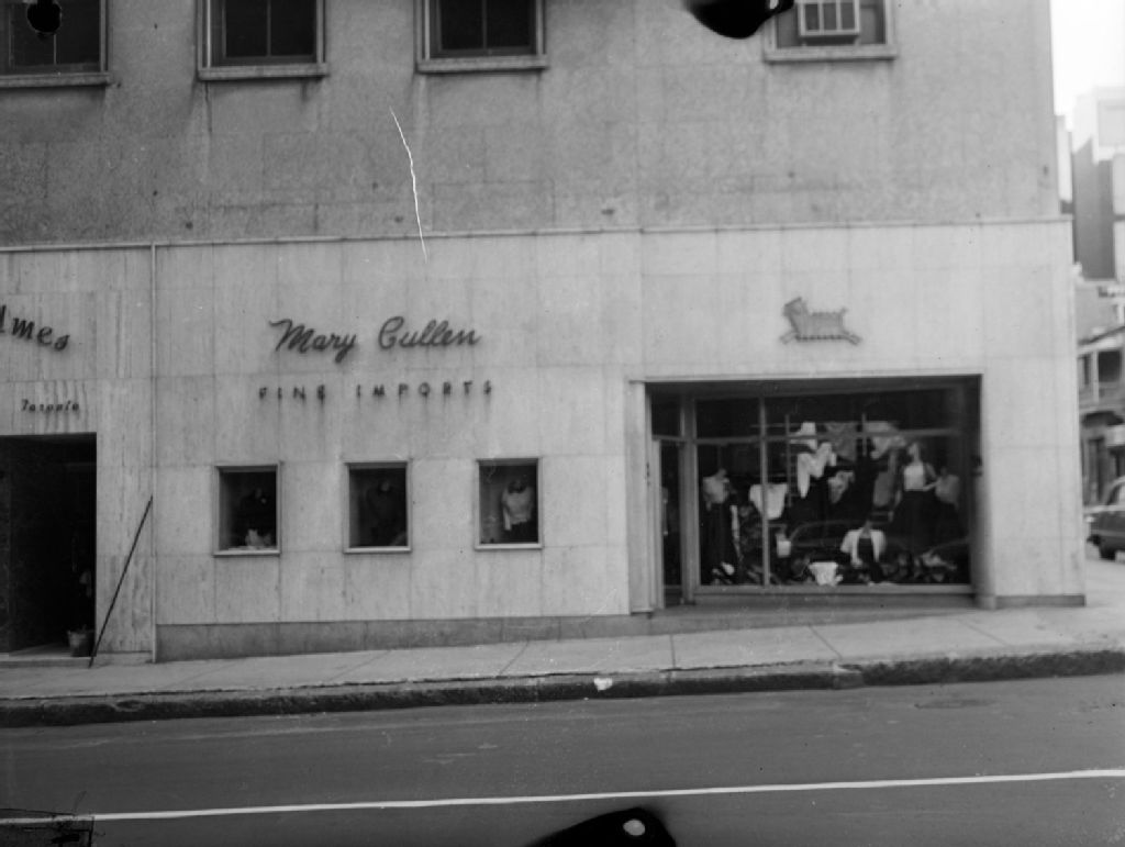 Nous voyons la façade de la boutique de vêtements pour femmes «Mary Cullen» de la rue Peel à Montréal