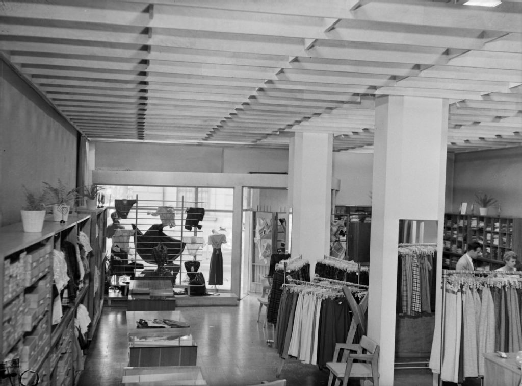 Nous voyons l'intérieur de la boutique de vêtements pour femmes «Mary Cullen» de la rue Peel à Montréal