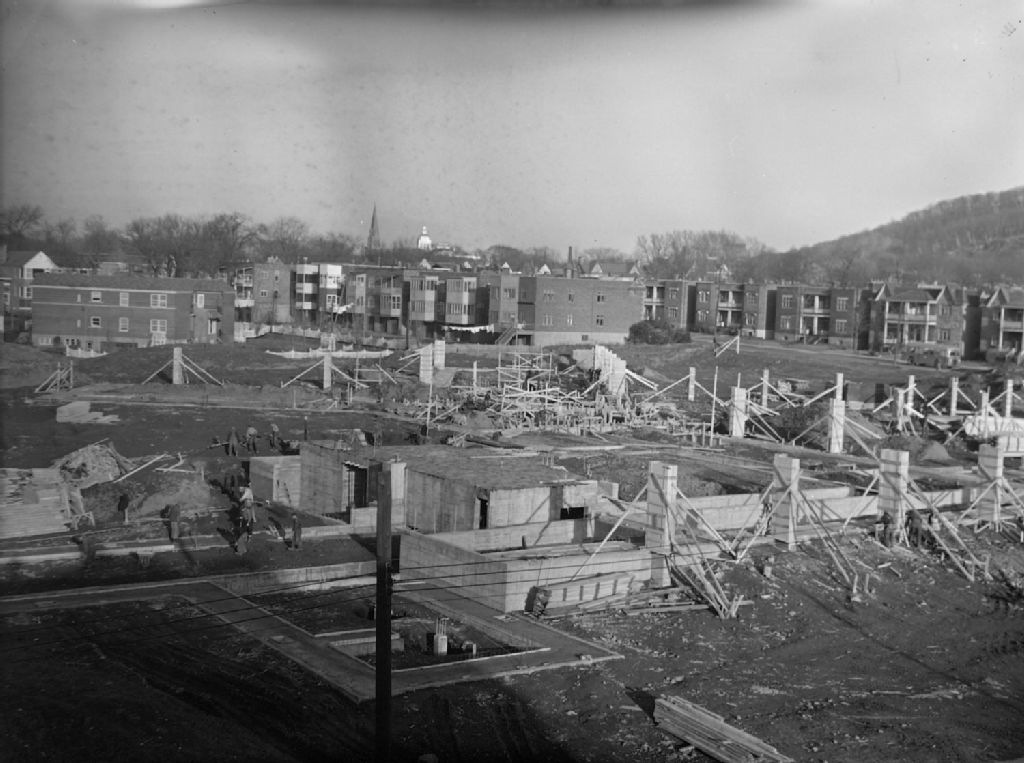 Nous voyons un chantier de construction des entrepreneurs Purdy & Henderson. Il s'agit de l'école «Logan School» située avenue Darlington à Montréal