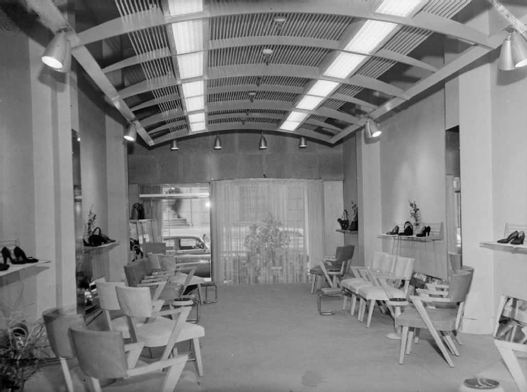 Nous voyons l'intérieur du magasin de chaussures «Owens & Elmes» de la rue Peel à Montréal