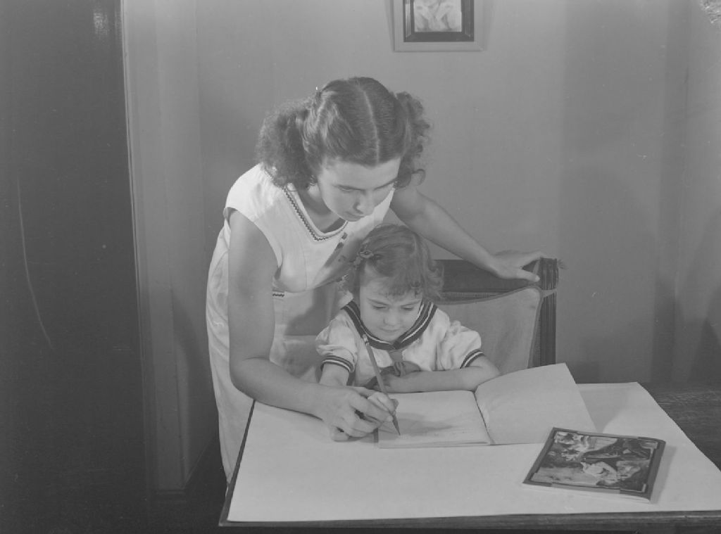 Children's Activities. Back to School. Homework. Eileen & Shirley, 18 septembre 1938, Archives nationales à Montréal, Fonds Conrad Poirier, (06M,P48,S1,P2129), Poirier, Conrad.