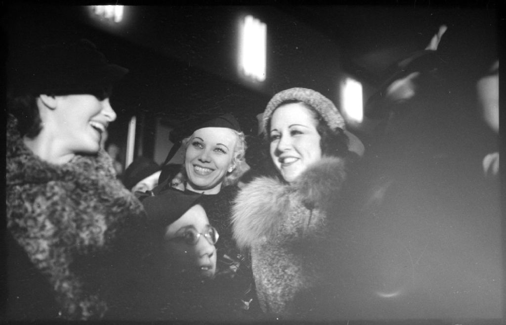 Nous voyons des spectatrices coiffées de chapeaux, devant le théâtre Loew's, 952 Sainte- Catherine Ouest à Montréal