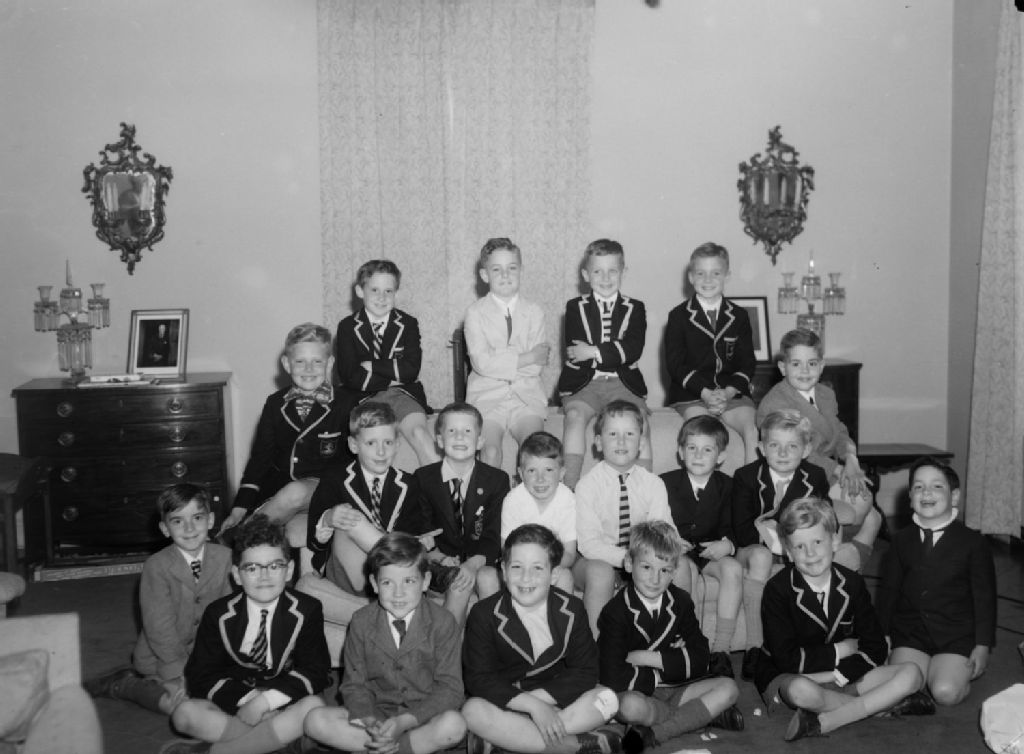 Des garçons, plusieurs en veston de Selwyn House School, sont réunis pour une fête organisée pour David McMaster qui habite chemin Daulac à Montréal