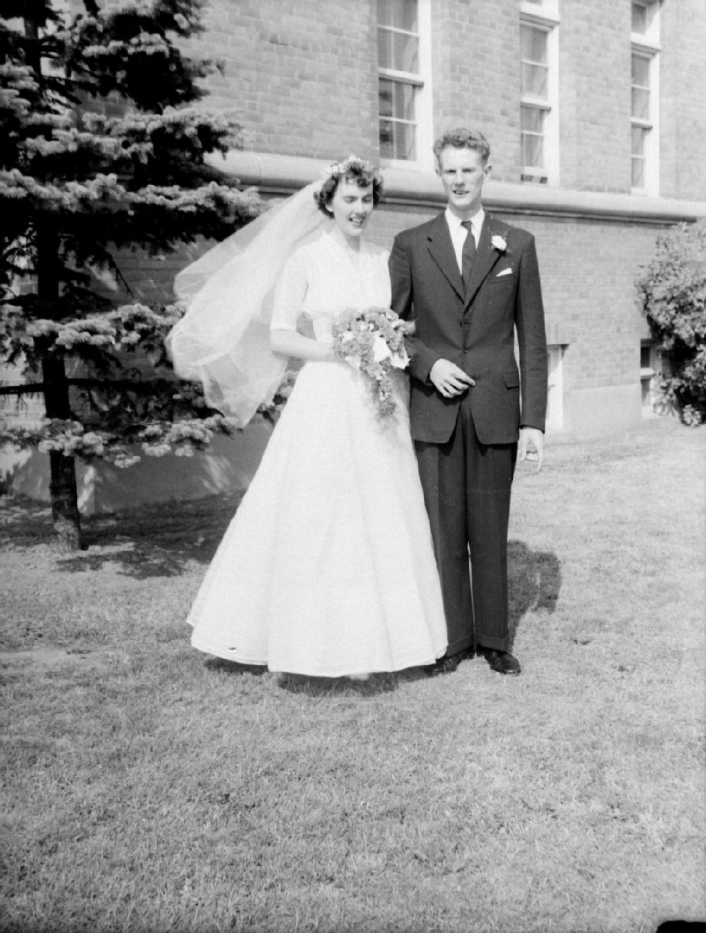 Nous voyons les nouveaux mariés, les Murdoch-Willis, à l'extérieur de l'église Wesley United Church de l'avenue Notre-Dame-de-Grâce à Montréal, où leur mariage a été célébré