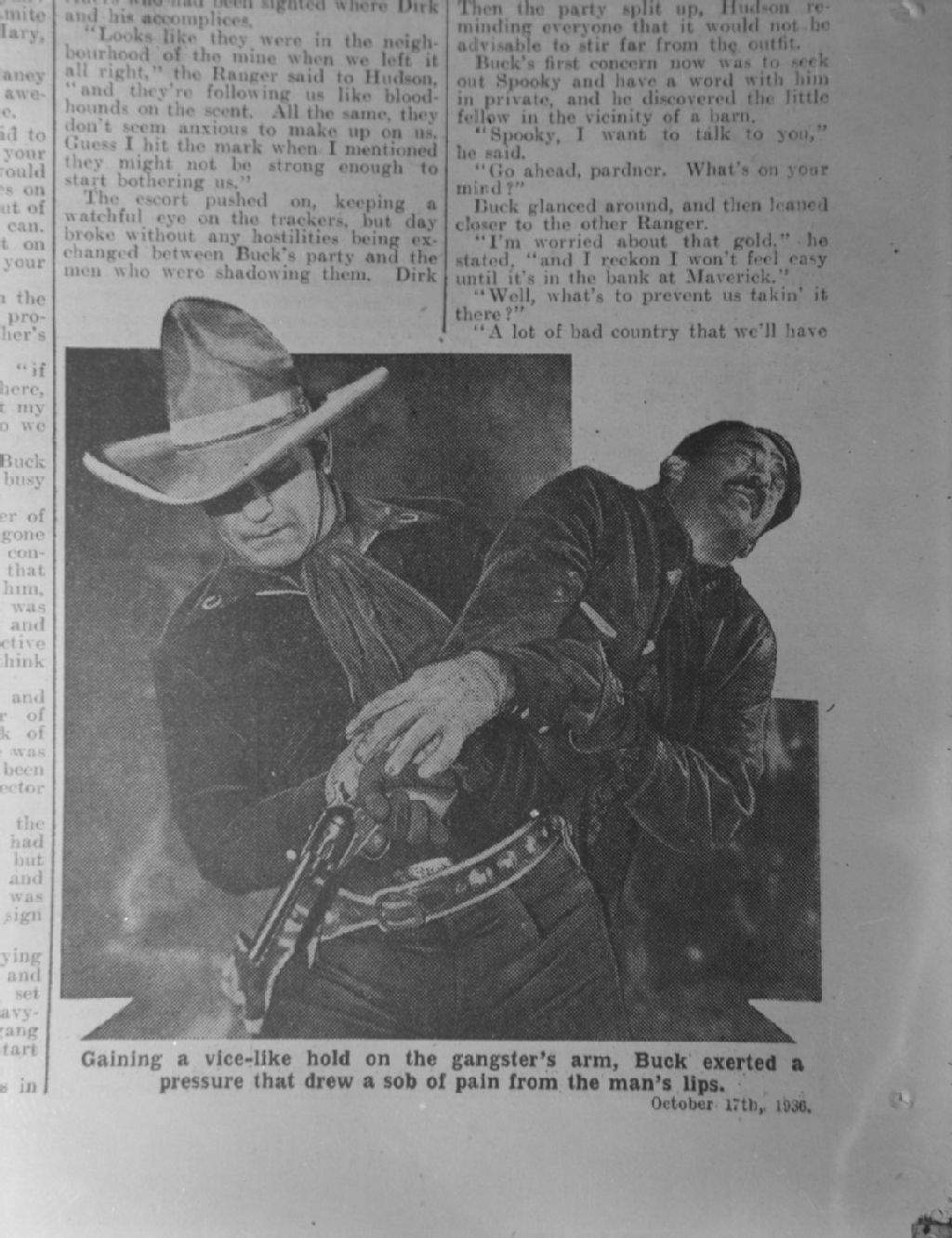 Nous voyons une photographie du film «Phantom Rider», tirée de la revue «Boy's Cinema» du 17 octobre 1936