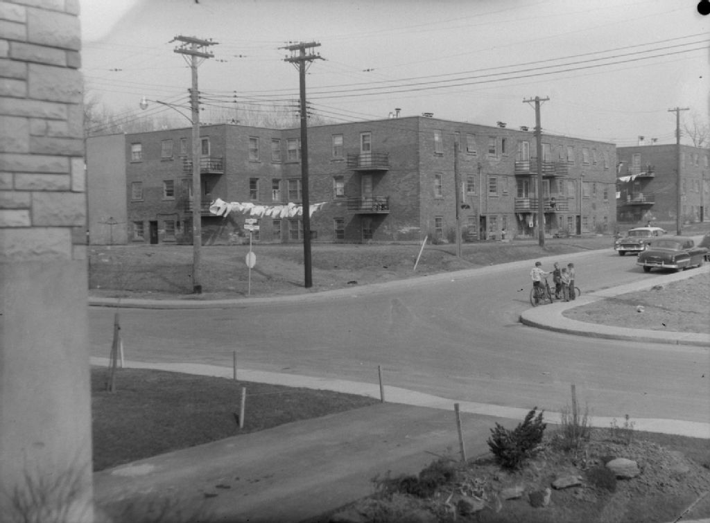 Buildings. Cote St. Luc Housing, Avril 1957, Archives nationales à Montréal, Fonds Conrad Poirier, (06M,P48,S1,P22272), Poirier, Conrad.
