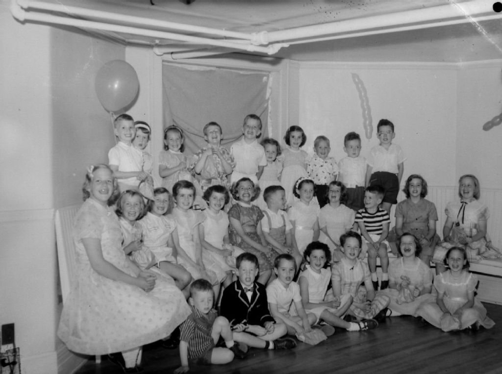 Des enfants sont réunis pour une fête organisée chez les Halfpenny qui habitent avenue Grosvenor à Westmount. Un garçon porte un veston de Selwyn House School