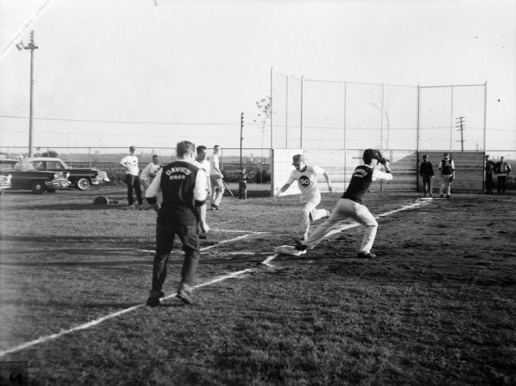 Nous voyons le match inaugural de la ligue de baseball de Montréal-Ouest. Nous remarquons qu'un des joueurs est vêtu d'un chandail avec l'inscription «Davies Bros.»