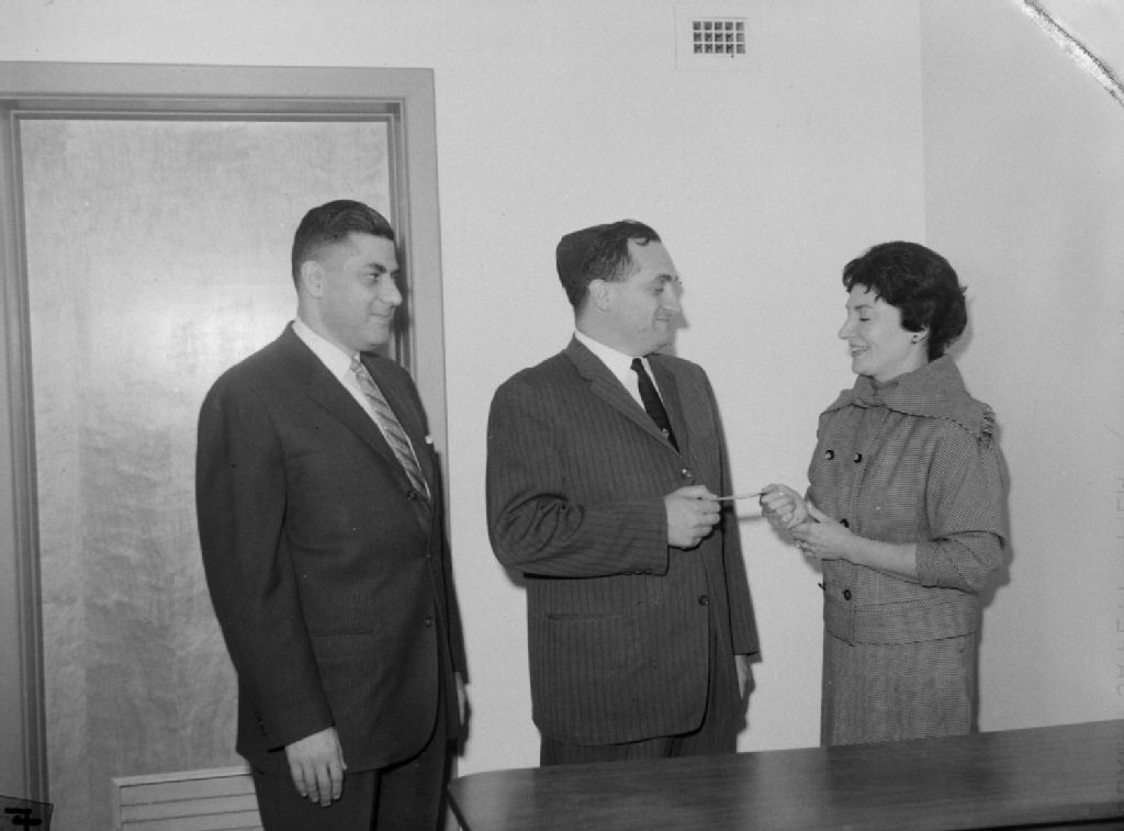 News. Cheque Presentation : Cote St. Luc, 22 octobre 1959, Archives nationales à Montréal, Fonds Conrad Poirier, (06M,P48,S1,P22747), Poirier, Conrad.
