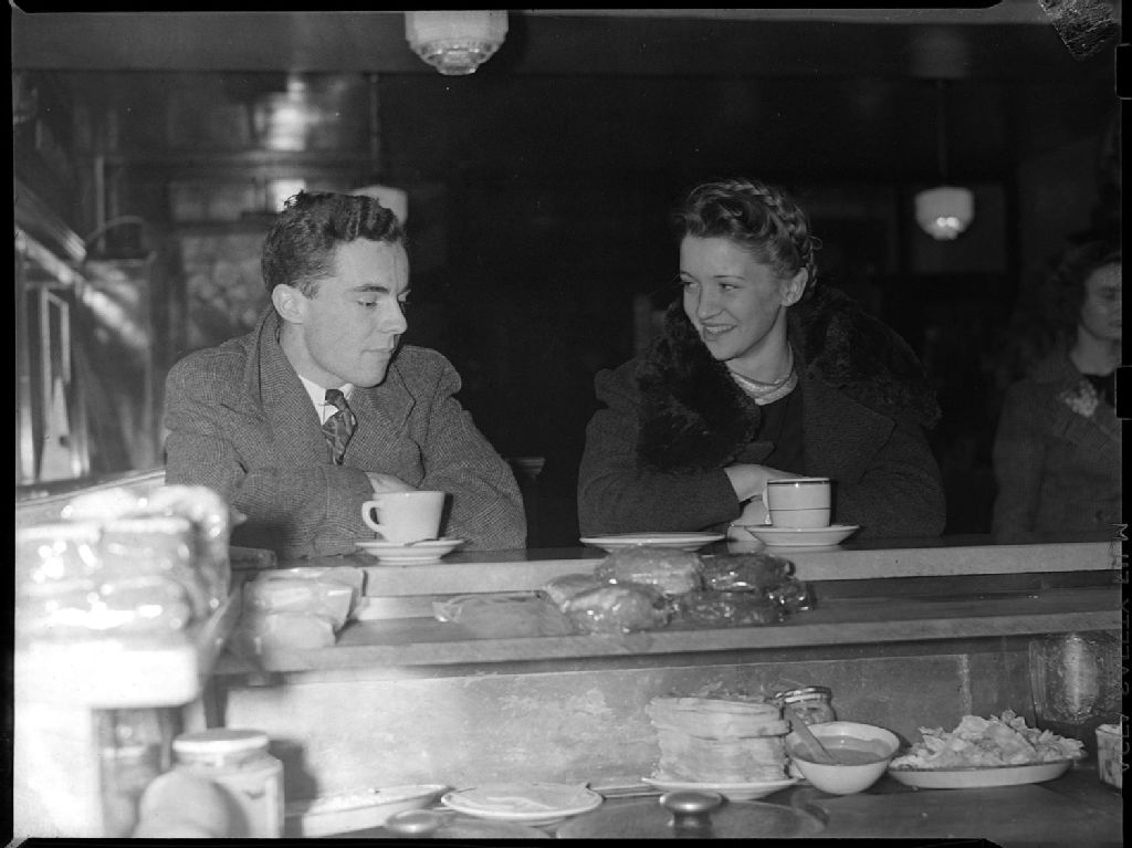 Nous voyons un couple de jeunes gens (Ainslie Mitchell et Frank Ewans) attablés à un comptoir de restaurant devant une tasse de café. Nous apercevons à l'avant-plan de la vaisselle et des aliments derrière le comptoir du restaurant