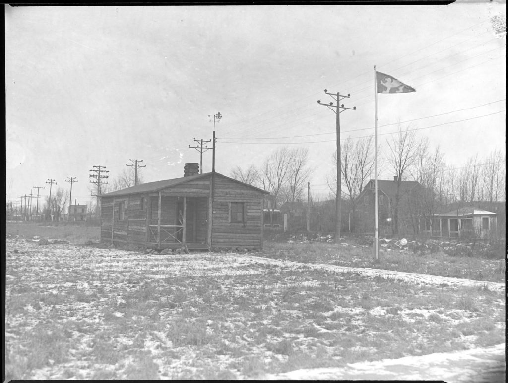 Nous voyons un chalet en bois rond appartenant à une troupe de scouts de Longueuil