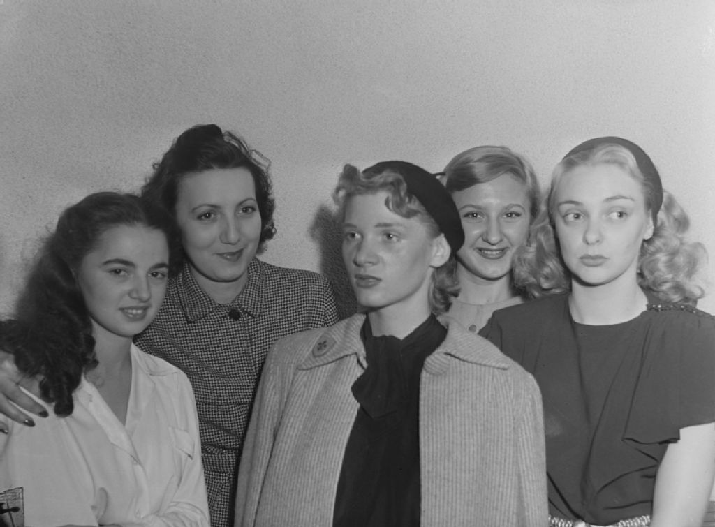 Quelques comédiennes de la troupe L'Équipe de Pierre Dagenais, dont Marjolaine Hébert, à l'extrême-droite