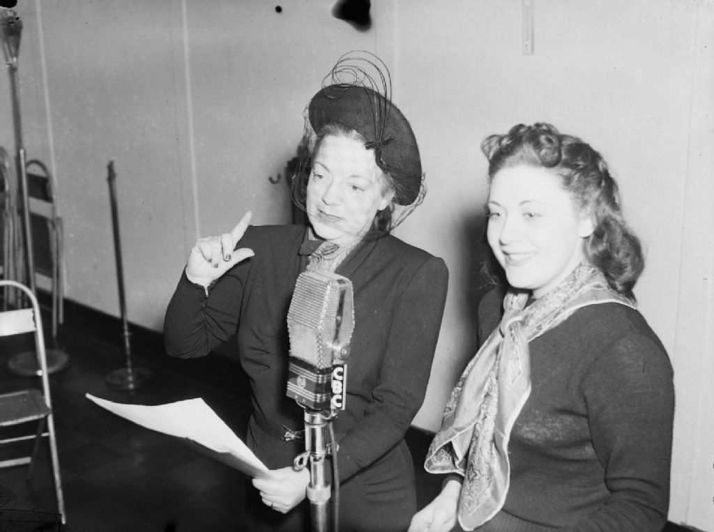 Deux comédiennes se donnant la réplique lors de l'émission de Francine Louvain radiodiffusée par C.B.C. à Montréal