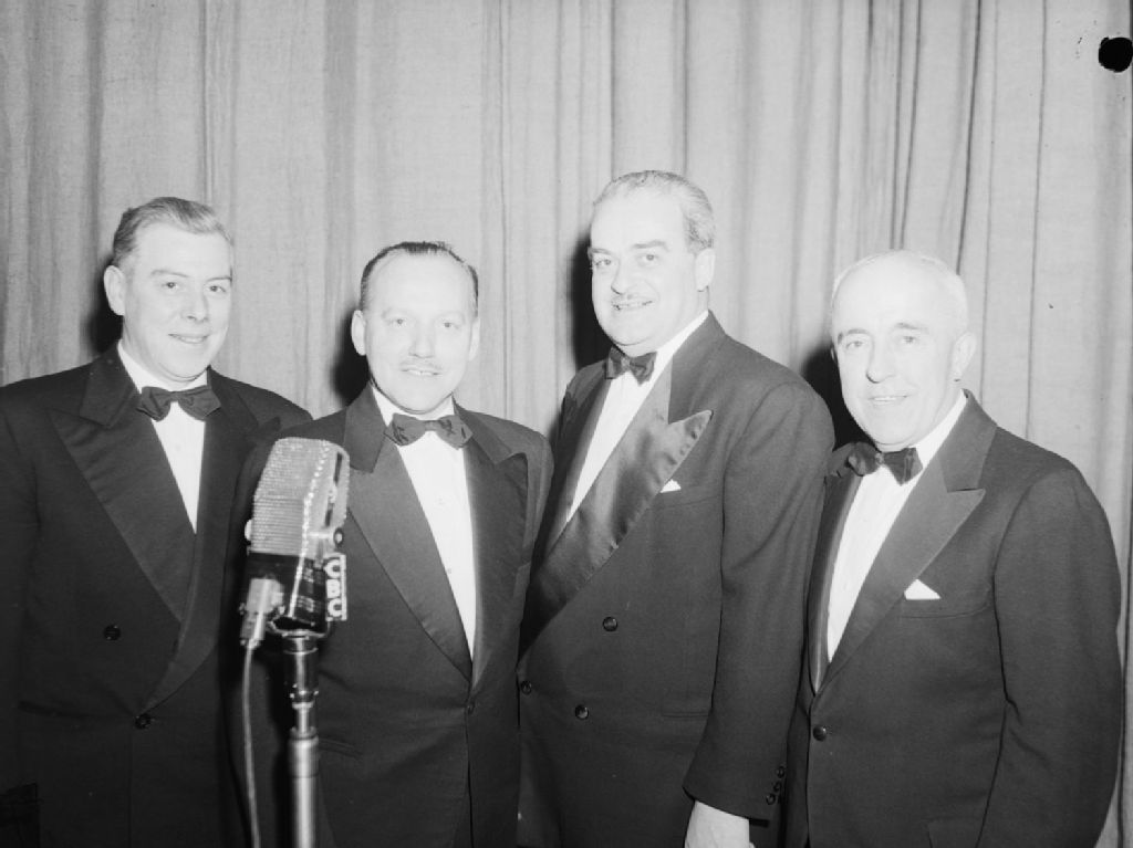 Le Quatuor vocal Alouette chantant a cappella durant l'émission «Morgantime» retransmise sur les ondes de C.B.C. à Montréal