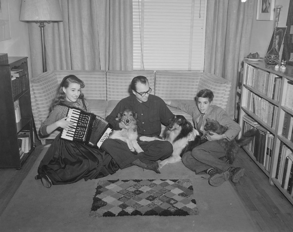 Annonceur de radio et ses deux enfants