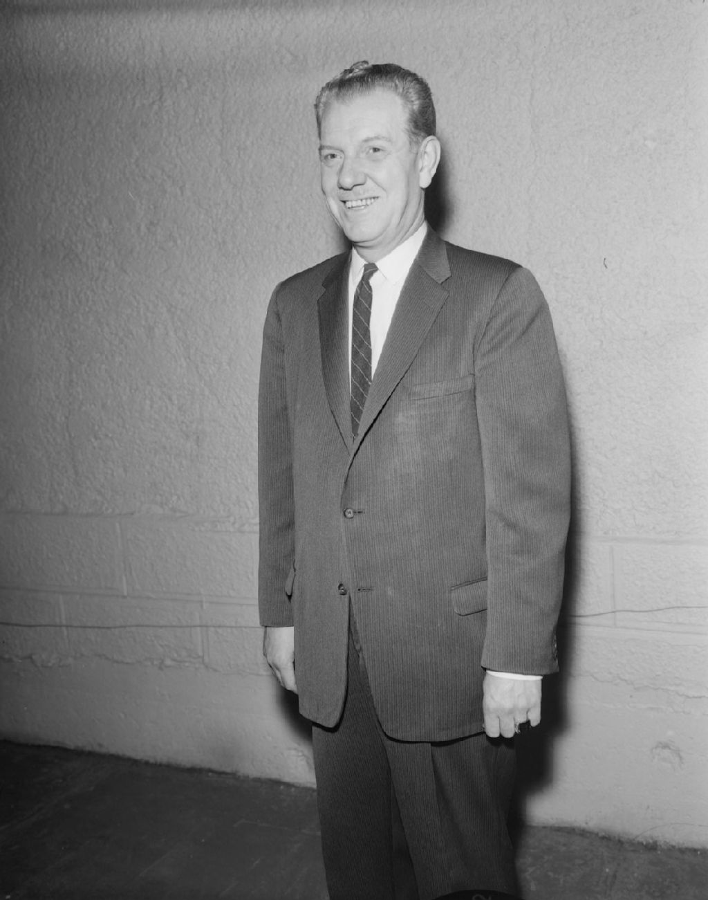 Annonceur de radio, 1950, Archives nationales à Montréal, Fonds Conrad Poirier, (06M,P48,S1,P23663), Poirier, Conrad.